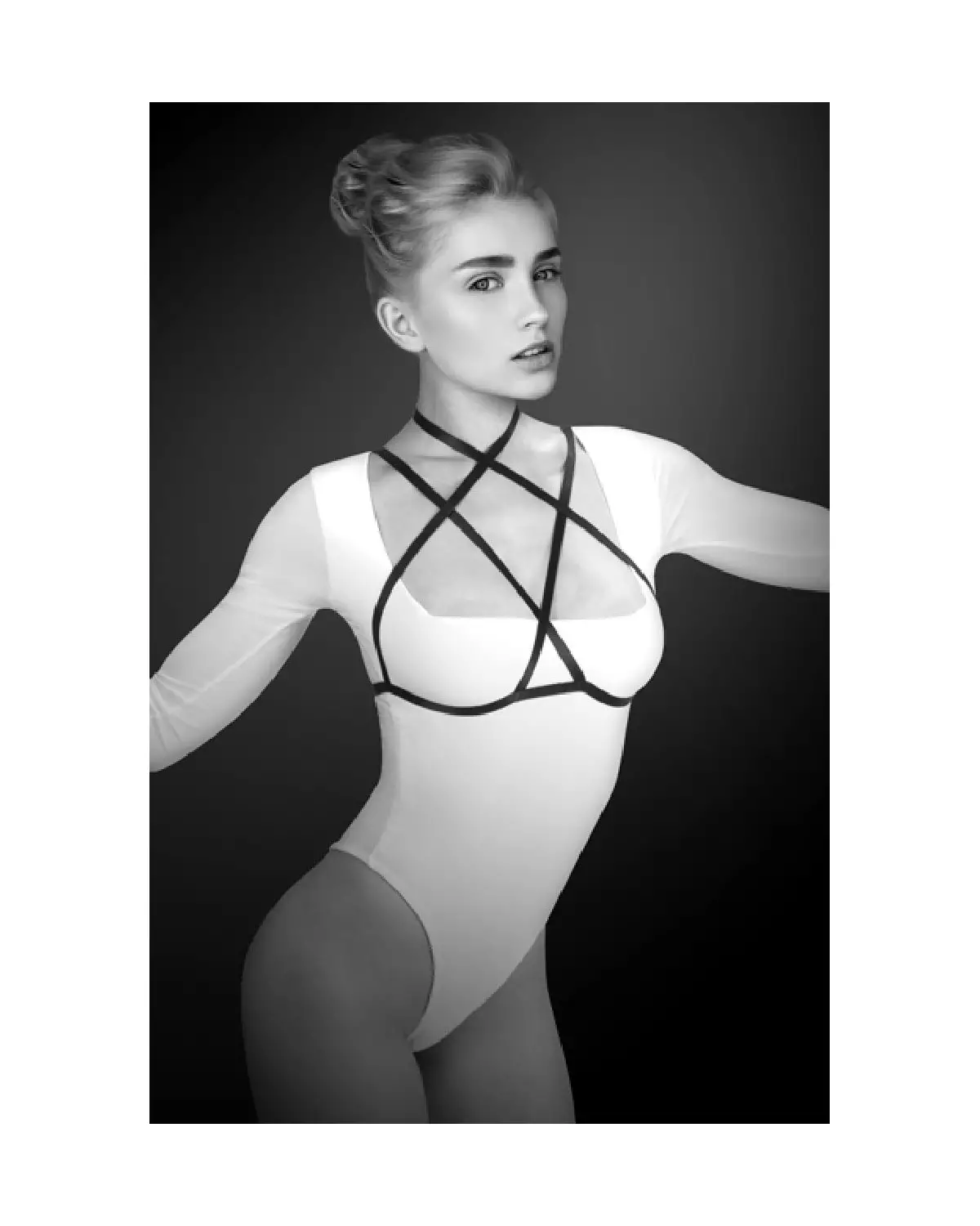• Portez un harnais en cuir sur un body transparent pour un look sensuel et provocant.